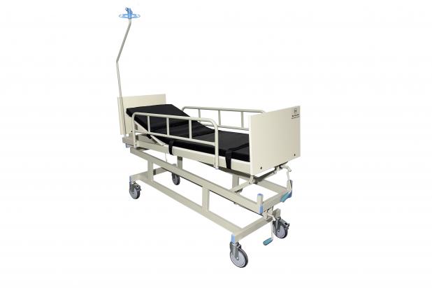 Camilla para shock-room con tapizado desmontable y cintas sujetadoras de paciente.