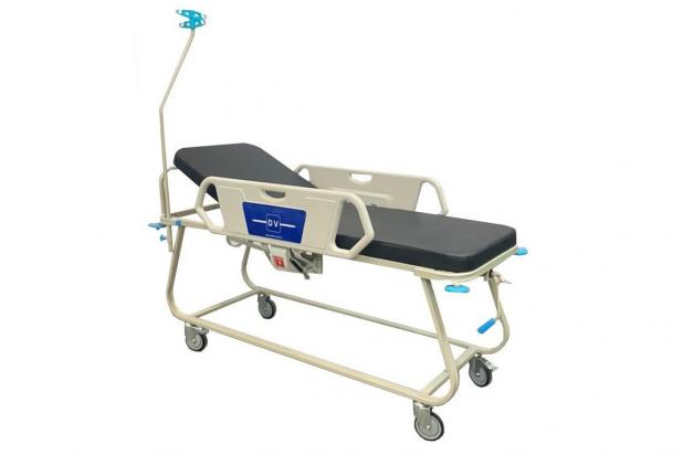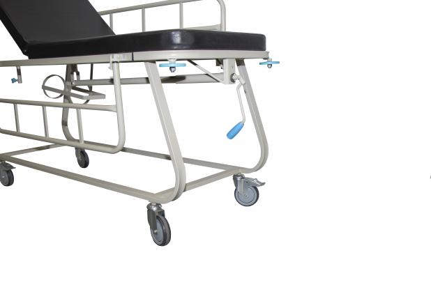 Camilla para traslado de pacientes de sencillo y fácil manejo con quiebre de cabecera de accionamiento manual.